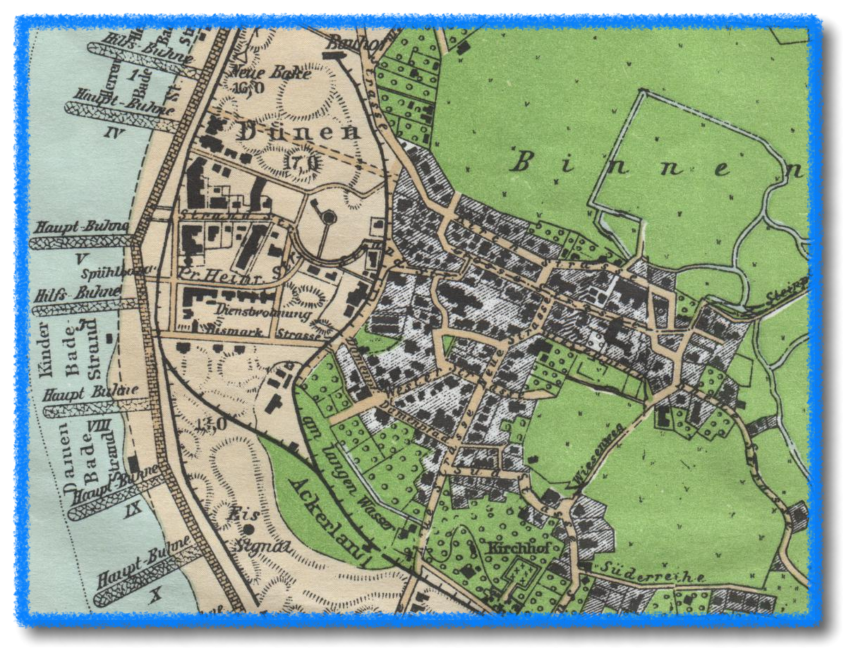 Auszug aus der Karte: Dorfplan von Borkum  (1900) Auszug aus der Karte: Dorfplan von Borkum  (1900) Borkumer Landkarte von 1900 Borkumer Landkarte von 1900 Borkumer Landkarte von 1900