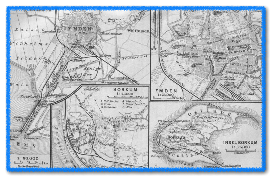 auf Borkum). Fährdampfer mehrmals wöchentl. für 5 M 10 (mit Eisenbahn auf